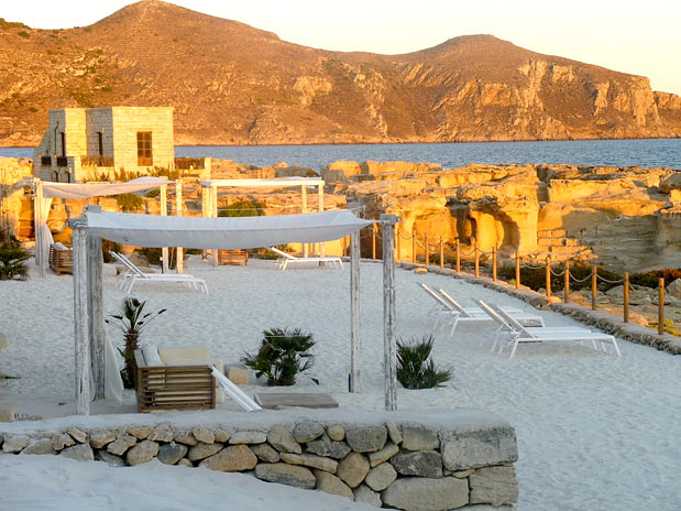 Poucos turistas estrangeiros conhecem a bela ilha de Favignana, na região da Sicília. Aqui é que se encontra Cas’almare, uma casa simples transformada em hotel de luxo. Com cinco quartos e um mobiliado bastante elegante, você poderá contemplar o azul do mediterrâneo descansando nas praias próximas e, depois, usar um dos dois barcos do hotel para um passeio a dois a águas mais distantes.