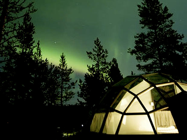 Na vasta e fria região da Lapônia, pinheiros gigantes elevam-se sobre 40 cabanas equipadas com lareira e 20 iglus de vidro térmico. De dezembro a abril, você também poderá ficar em um dos iglus de verdade, equipados com sacos de dormir. Mas a verdadeira atração é o cenário surreal onde você pode assistir às auroras boreais, muito frequentes na área. O lugar é garantia de lembranças duradouras.