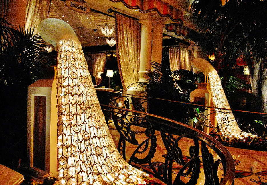 Entrada para as mesas de Bacarat do Encore é enfeitada com flores e pavões de cristal.Foto: Solly Boussidan / Especial para o Terra