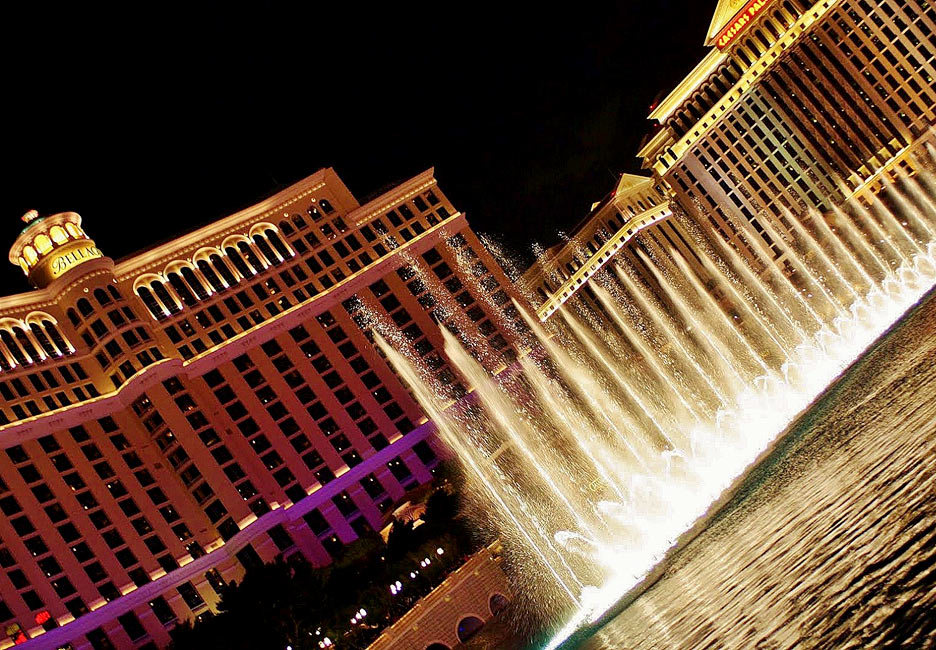 O Bellagio é um dos hotéis mais chiques de Las Vegas. Construído em estilo italiano neo-renascentista, mas com toques asiáticos, franceses e influências de arte contemporânea, possui quartos amplos. O hotel é famoso por sua enorme fonte musical na fachada, com a água "dançando" e sendo iluminada conforme o ritmo da canção tocada.Foto: Solly Boussidan / Especial para o Terra