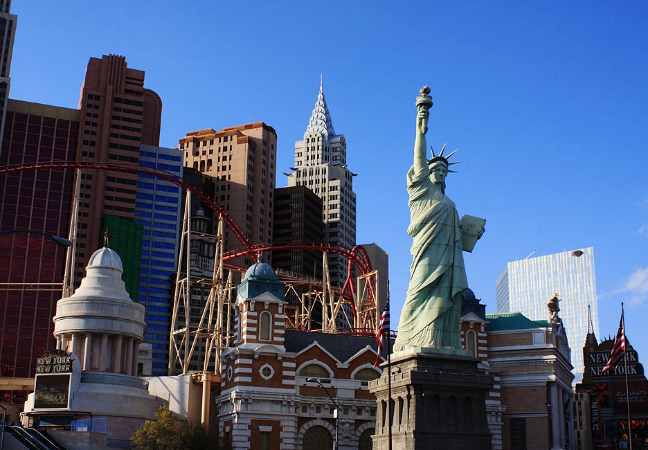 Apesar de mais simples, o New York, New York fará com que os hóspedes mais urbanos se sintam em casa. Uma cópia fiel de algumas das principais ruas de Manhattan, o local abusa de lojas e possui uma enorme montanha-russa para quem cansar dos caça-níqueis.Foto: Solly Boussidan / Especial para o Terra