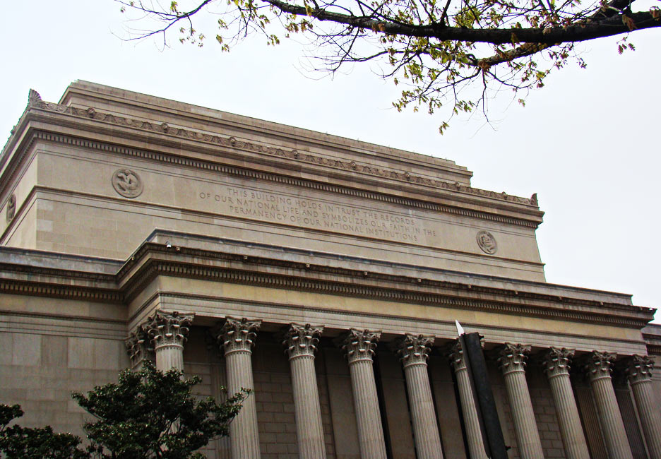 Fachada do prédio do National Archives vista pela entrada localizada na Pennsylvania Avenue, em frente ao Navy Memorial.Foto: Ligia Hougland, Direto de Washington / Especial para Terra