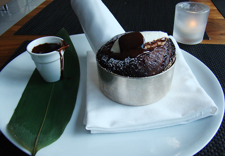 Quem experimenta este souflé de chocolate experimenta um pedaço de paraíso. Esta sobremesa, e muitos outros pratos e coquetéis fantásticos, pode ser saboreada no The Source, restaurante de Woflgang Puck, adjancente ao prédio do Newseum.Foto: Ligia Hougland, Direto de Washington / Especial para Terra