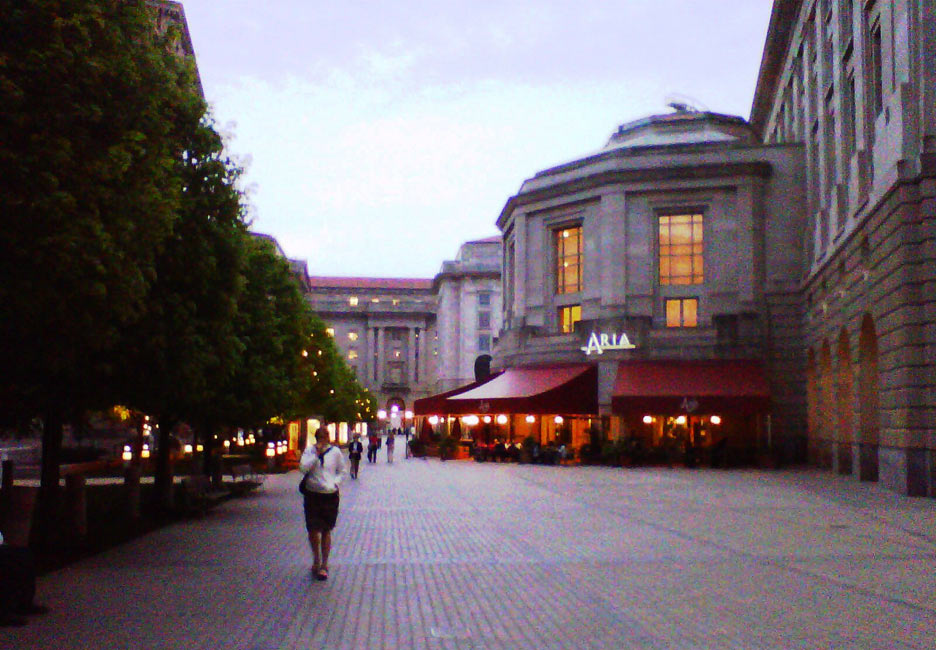 Bem na saída da estação de metrô Federal Triangle, fica o Ronald Reagan Building and International Trading Center, uma área espaçosa e atraente, perto de diversos restaurantes e lojas.Foto: Ligia Hougland, Direto de Washington / Especial para Terra