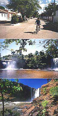 A cidade (acima) e as cachoeiras do Itapecuruzinho (centro) e do Prata (abaixo)