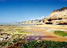 Na maré baixa, formam-se piscinas naturais em função dos recifes de corais