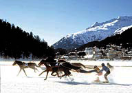No lago de Saint Moritz, pratica-se esqui durante as corridas de cavalos