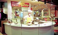 o produto na frente dos visitantes. Na alta temporada, o chocolateiro