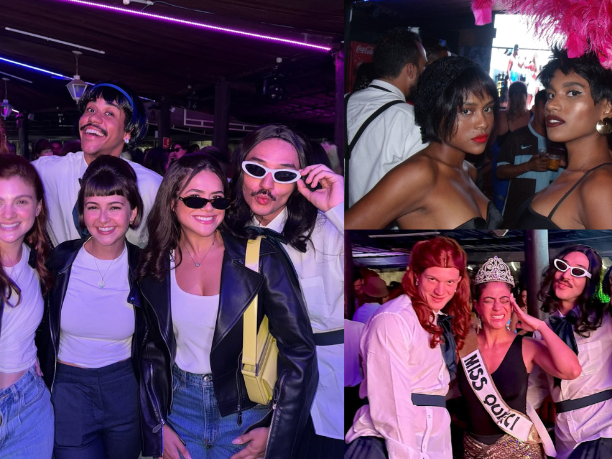 Com direito a perucas e uniforme, o destaque da noite ficou por conta do trio Pedro Novaes, João Vitor e Cauê Campos deram a vida na produção e arrasaram com seus looks inspirados em Celeste, Bia e Eugênia.