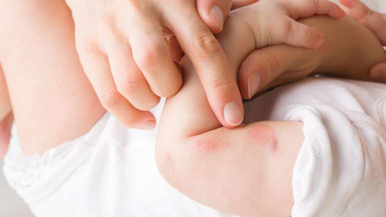 Nesse período, a pele do bebê pode apresentar, por exemplo, brotoejas causadas pelo clima, dermatites e alergias às fraldas ou produtos diários, como sabonetes, shampoos, talcos, amaciante de roupas, entre outros.