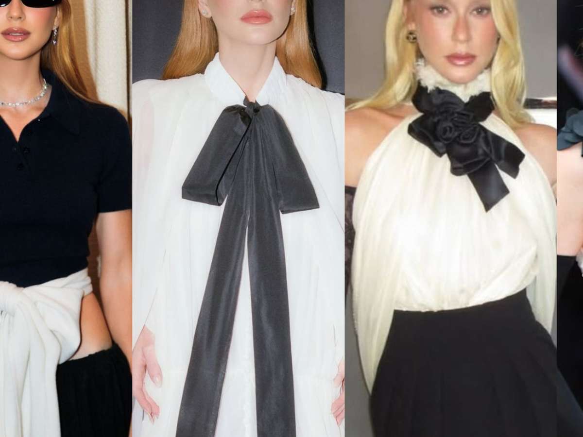 Além de esbanjar simpatia e beleza, um outro detalhe voltou aos olhos para a atriz: quem a acompanha percebeu que, em um curto intervalo de tempo, ela foi vista usando looks muito parecidos, em preto e branco e com detalhes em laços, elemento que tem aparecido com força nas passarelas e no street style das fashionistas.