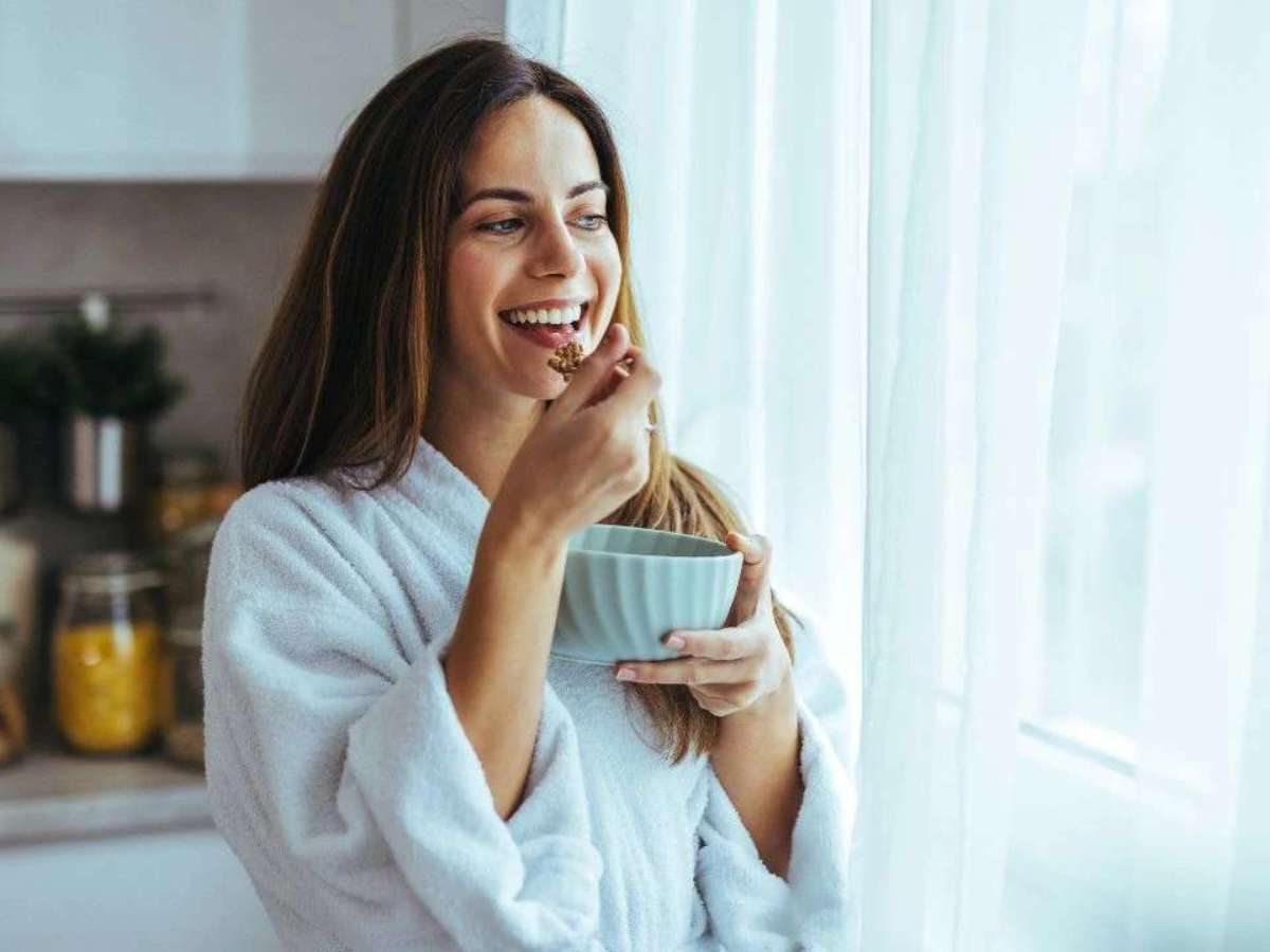 Consumir proteína pela manhã traz bastante saciedade para o resto do dia. Assim, você deve conseguir controlar melhor sua alimentação no resto do tempo, além de se sentir saciada e com energia. Isso sem contar que as proteínas são boas para a pele, o cabelo e as unhas.