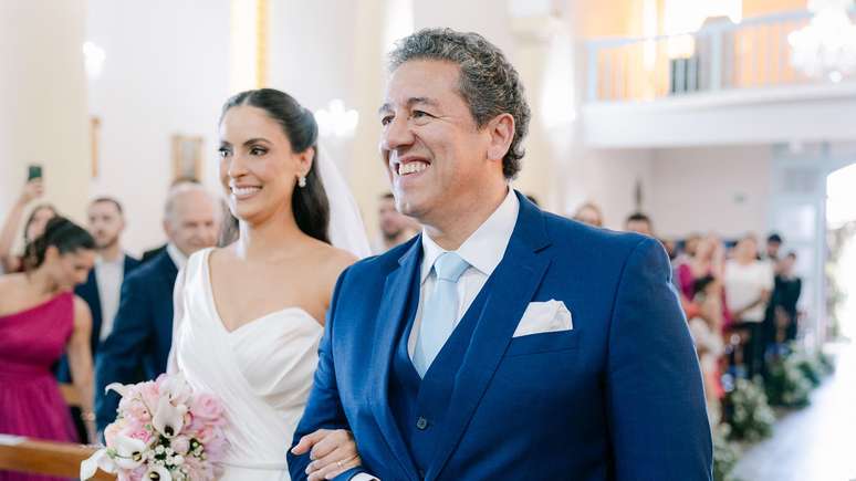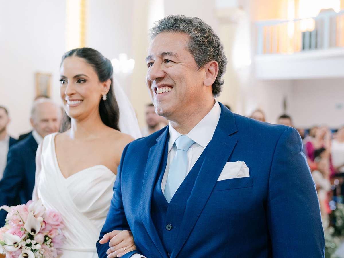 Filha do cantor Altemar Dutra Jr, Isabela se casa com Sergio em cerimônia na igreja e vê a emoção do pai em seu grande dia