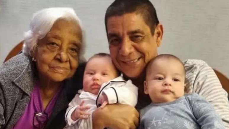 "Imagina ser mãe do Zeca Pagodinho! Pois aqui está ela: Dona Neia, a aniversariante de hoje, que também é bisavó do Domênico, do Miguel, do Noah e da Catarina! E aí, pessoal? Vamos mandar um feliz aniversário para ela aqui nos comentários?", escreveu.