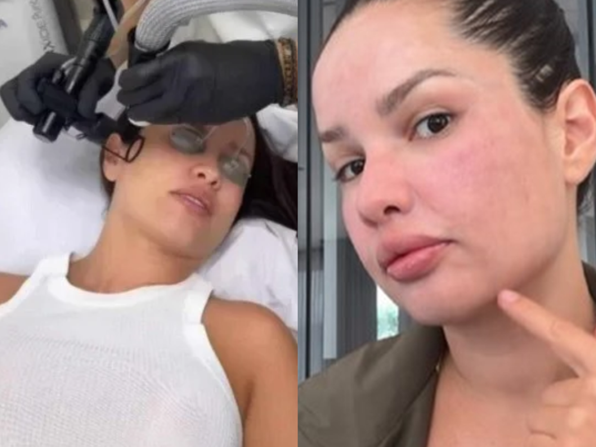 Após procedimento com esperma de salmão, Julliette mostra como o seu rosto ficou. Especialista explica como funciona