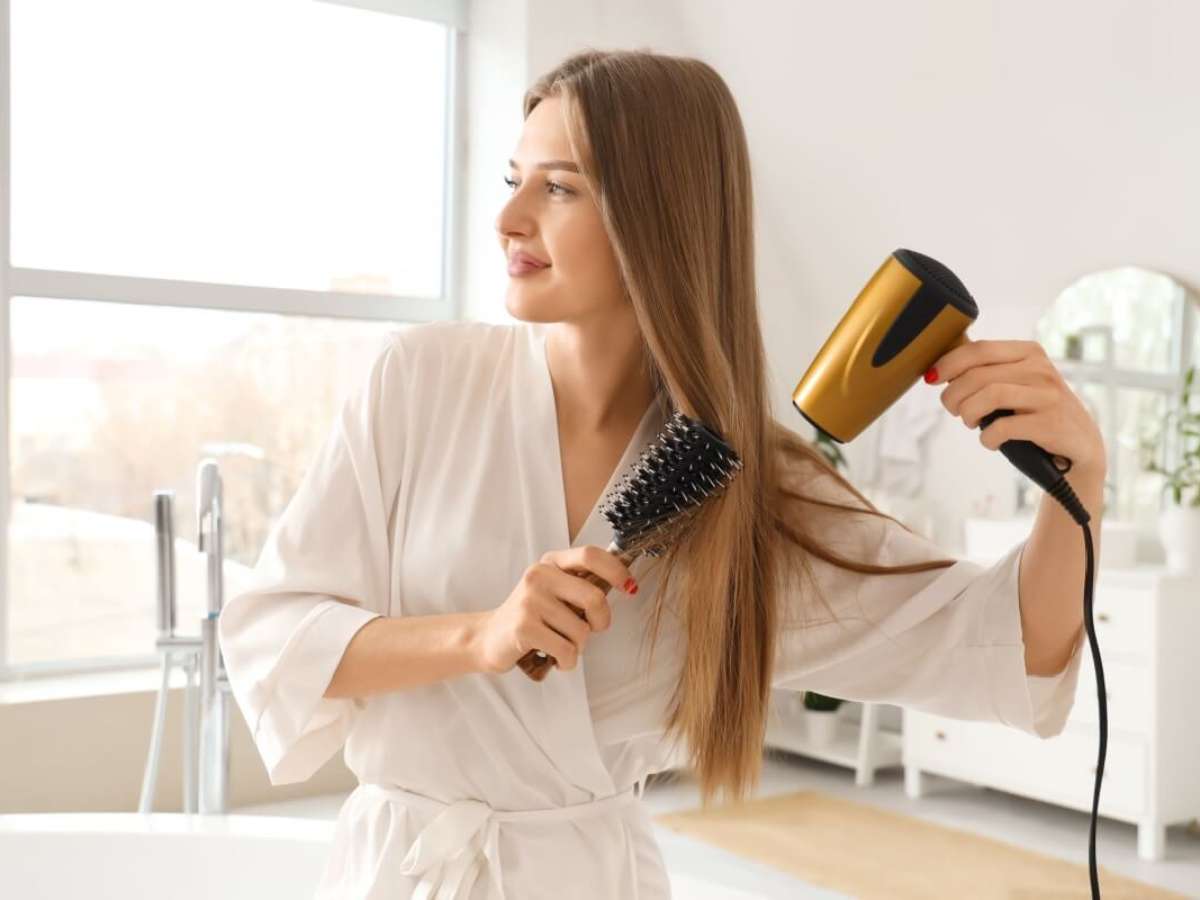 O secador é útil nos dias frios, mas sem proteção térmica ele se torna um vilão. Antes de usar qualquer ferramenta de calor, aplique um produto com escudo térmico para evitar danos à fibra capilar.