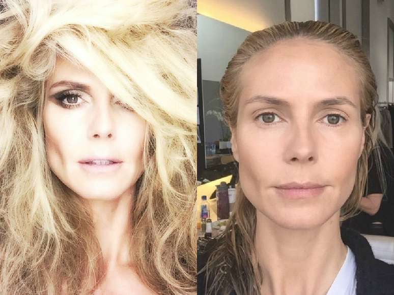 Heidi Klum não tem mais medo de aparecer de "cara lavada", sem maquiagem nenhuma. Aos 41 anos, a modelo, um dos principais nomes do universo da moda, publicou duas fotos em seu Instagram, fazendo um antes e depois de colocar maquiagem para produzir uma campanha.
