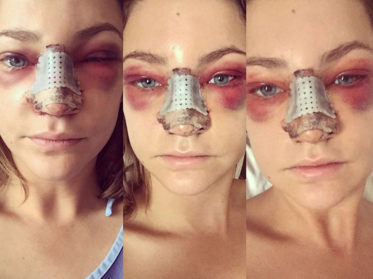 Blogueira compartilha fotos chocantes após plástica no nariz