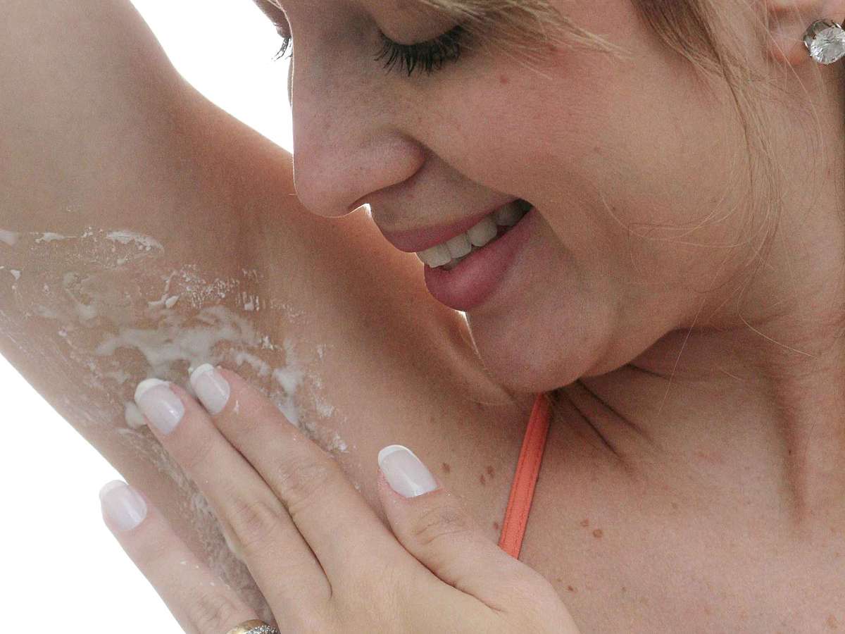 Certo: espalhe em toda a axila e, em seguida, na virilha