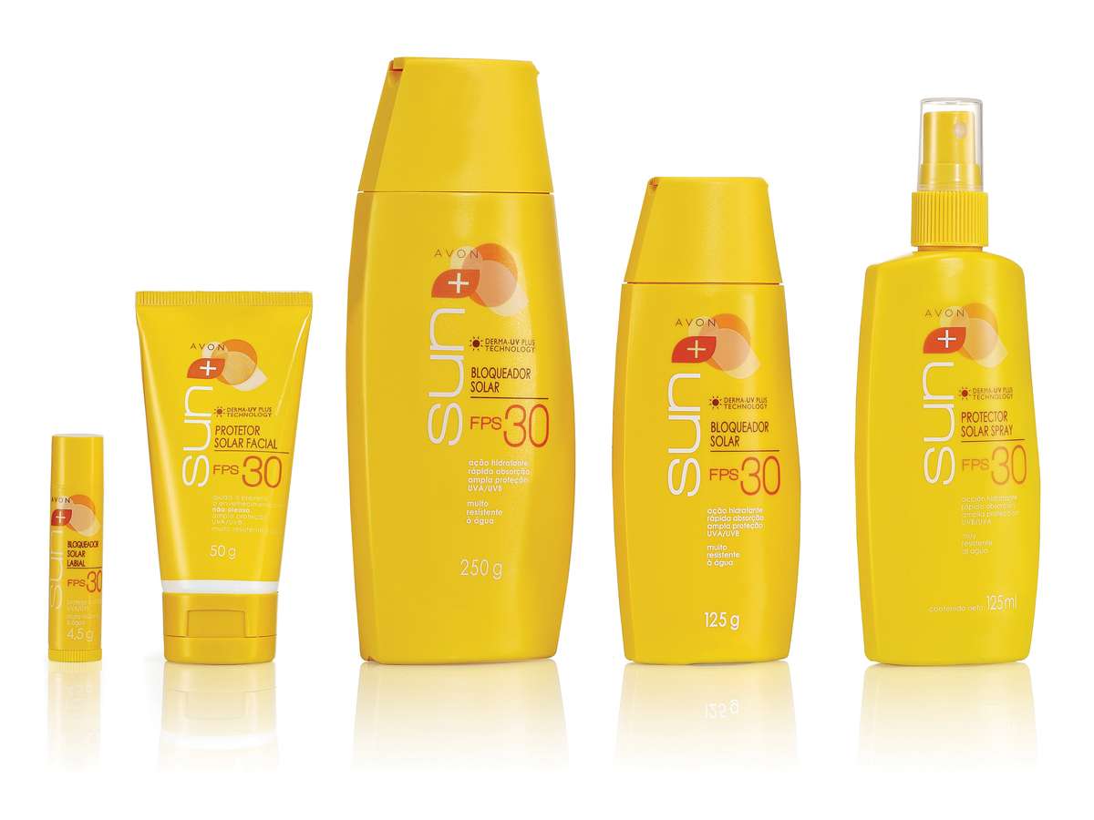 Linha Avon Sun+: composta por 12 itens, com fórmulas leves, de rápida absorção e fragrância suave. Preço sugerido: bloqueador solar labial FPS 30 R$ 10; protetor solar facial FPS 30 R$ 22; bloqueador Solar FPS 30 com 250 g preço R$ 24,99 em oferta 38 em regular; Avon Sun+ bloqueador solar FPS 30 com 125 g R$ 25. SAC: 0800 708 2866