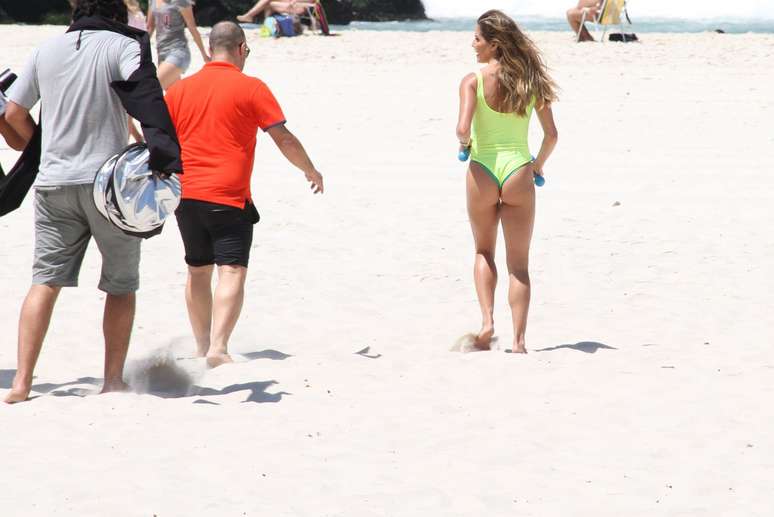 Deborah Secco mostrou que está em excelente forma na manhã desta sexta-feira (10). A atriz foi clicada na praia da Barra da Tijuca usando peças de moda praia; primeiro, um maiô decotado, depois, outros looks com a barriga sequinha à mostra.