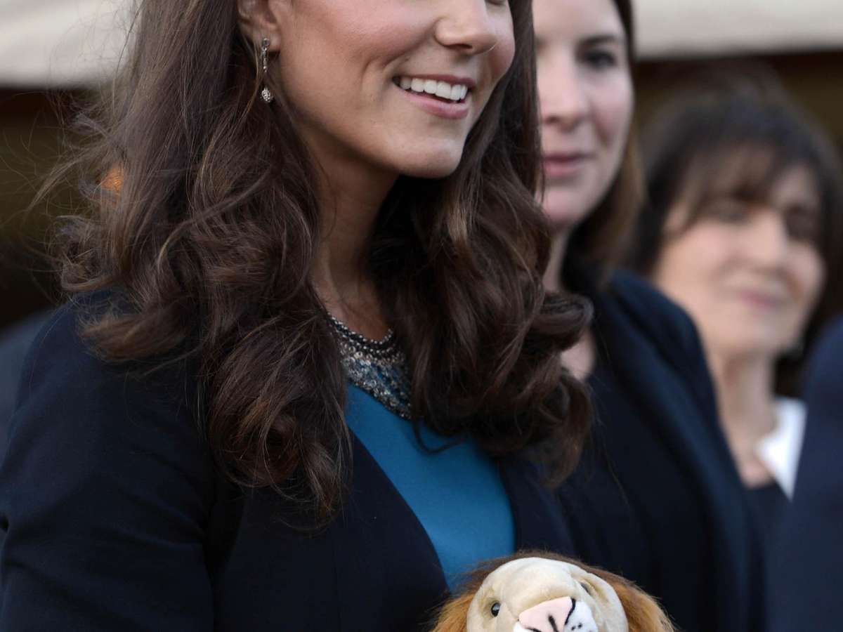 LONDON, UNITED KINGDOM - JUNE 15: Catherine, Duchess of Cambridge (L) is presented with an Aslan lion toy as she hosts 150 children and young people from The Art Room at a performance of The Lion, The Witch and The Wardrobe at Kensington Gardens on June 15, 2012 in London, England. (Photo by Rebecca Naden - WPA Pool/Getty Images)