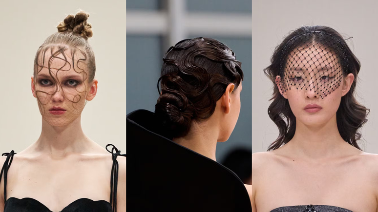 e depender da alta-costura de Paris e de Dubai, o wet hair voltou com tudo. Os fios ganham efeito molhado caindo no rosto com ondas bem marcadas, formando um tipo de véu.
