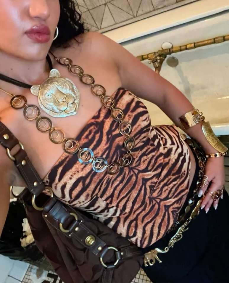 Se a sua vibe é um look bafônico para a noite, invista em peças que valorizem o corpo. Cortes ajustados, como um corset brilhante de tigre, são a aposta perfeita.