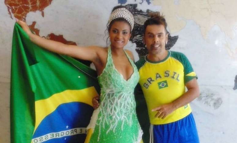 Edson Eddel com a bailarina do Faustão Dayane Nascimento: sem medo de cores no altar
