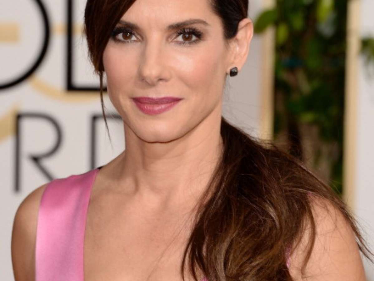 Sandra Bullock, que concorre ao Oscar como melhor atriz em Gravidade, apostou em visual mais simples, que valoriza a beleza sem exageros. Escolheu rabo de cavalo baixo e lateral. Na maquiagem, usou marrom-chocolate na pálpebra móvel, preto esfumado apenas nos cantos externos e contorno, e creme abaixo do arco da sobrancelha. Para completar, máscaras para cílios com volume, blush rosado e batom rosa.