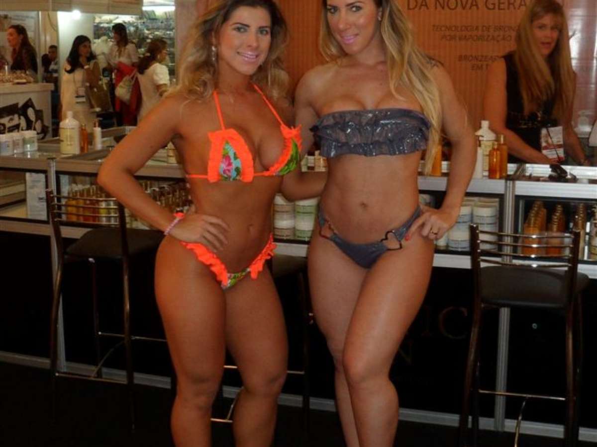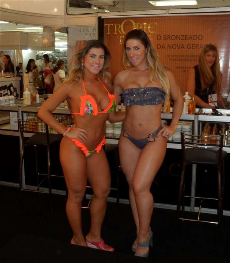 Ana Paula e Tatiane Minerato exibiram suas marquinhas de biquíni durante participação especial na 20ª Exposição Internacional da Beleza Estétika