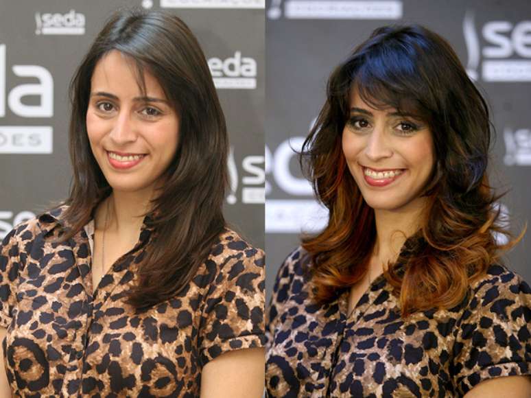 A blogueira Luli Monteleoni, de 29 anos, ganhou um look moderno com as luzes invertidas na tonalidade cobre. O corte repicado complementou a transformação