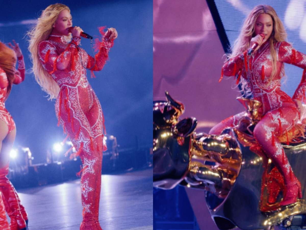 Este visual marcante é utilizado pela artista durante performances de sucessos como "Jolene". Essa canção, originalmente, é de Dolly Parton e Beyoncé sobrevoa a plateia em uma ferradura gigante.