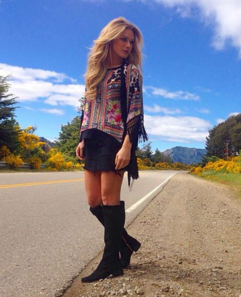 Botas compõem looks estilosos, como o de Fiorella Mattheis, para que vai passar alguns dias no sítio