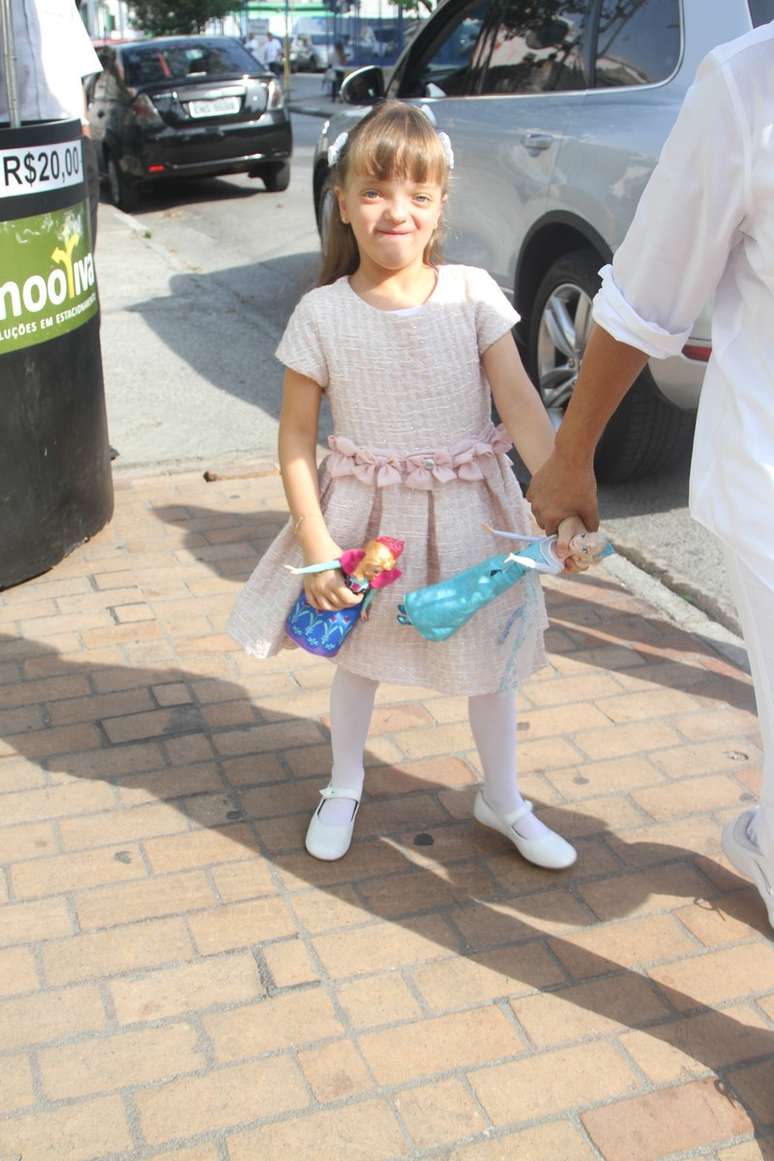 Rafaella Justus está uma graça com o vestido e o sapatinho de verniz, look ideal para um aniversário, mas dispensável para um acampamento infantil