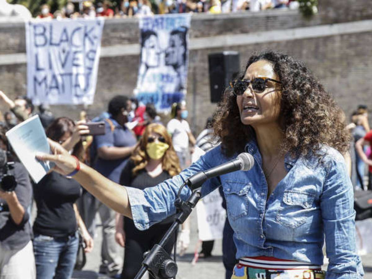 O ato, deflagrado após a morte do afro-americano George Floyd, asfixiado por um policial branco em uma operação em Minneapolis no último dia 25 de maio, reuniu centenas de pessoas nas ruas da capital italiana. Entre os muitos jovens e muitas famílias, a designer de moda se destacou com suas palavras fortes e tocantes em memória a Floyd, principalmente por citar a Constituição ao fazer um apelo por cidadania.