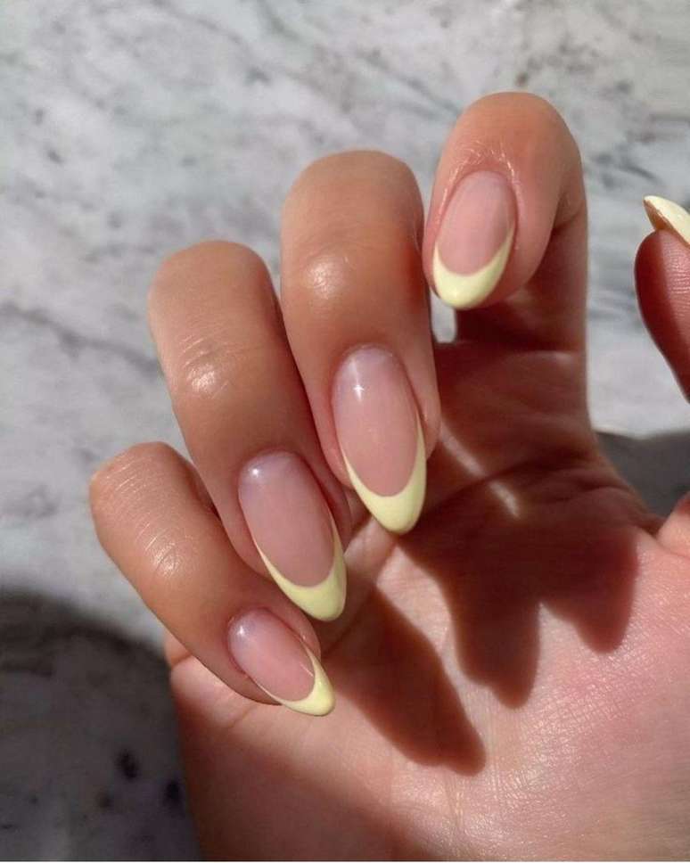 Para as fãs de clássicos, a francesinha com a ponta amarelo manteiga é a escolha perfeita. Em vez do branco tradicional, use o amarelo suave para dar um toque de modernidade.