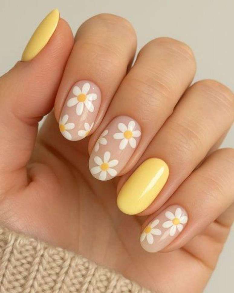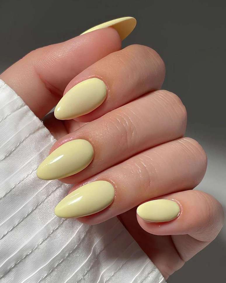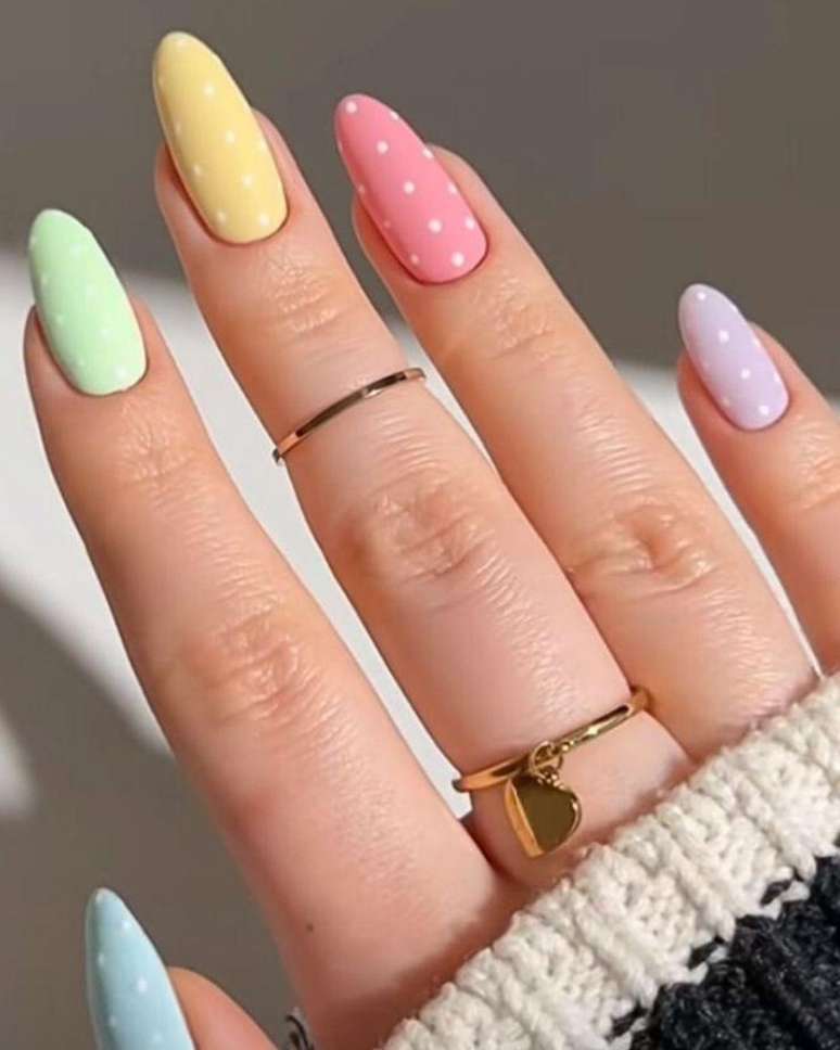 Que tal misturar o amarelo manteiga com outras cores suaves na mesma mão? A técnica "skittle" consiste em pintar cada unha de uma cor diferente, mas na mesma paleta.
