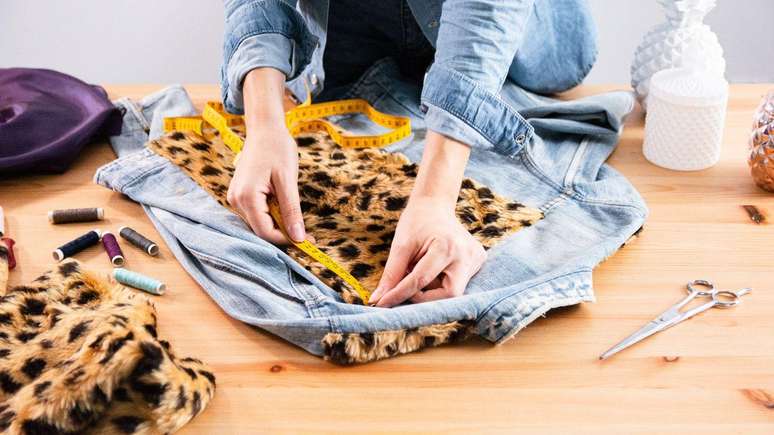 Não precisa de máquina de costura e nem de curso de moda, tá? O conceito aqui é moda sustentável e criativa. Anote o que você vai precisar: