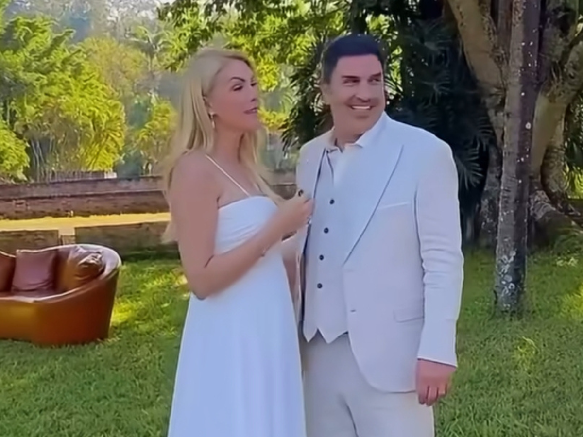 A propriedade rural do casal, chamada Casa Gialla di Ana Edu, serviu de cenário. A apresentadora exibiu dois vestidos brancos longos de noiva. Completou o visual com cabelos soltos e maquiagem leve, finalizada com batom nude (tom próximo ao da pele dela).