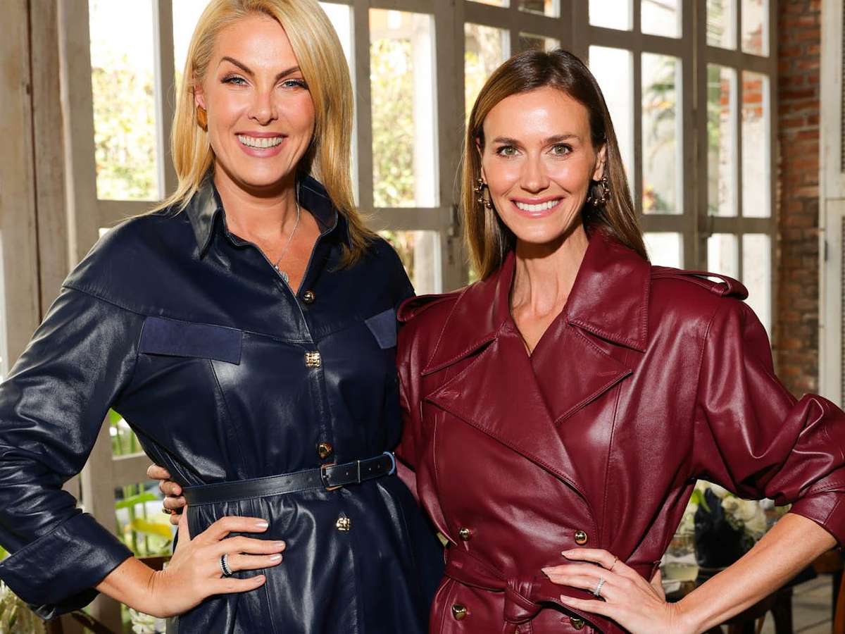 Ana Hickmann participou de evento de lançamento de linha de couro da grife Fig Cool Leather, para o Dia das Mães, ao lado de Renata Kuerten e Carol Celico. Todas apostaram em looks de couro, claro, em tons mais fechados,como azul-marinho, bordô e preto.
