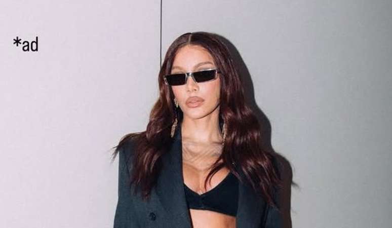 Anitta foi ao evento com um conjunto de alfaiataria atualizado, com blazer corpped e calça com prega e modelagem larga. Para completar, top preto tipo sutiã.