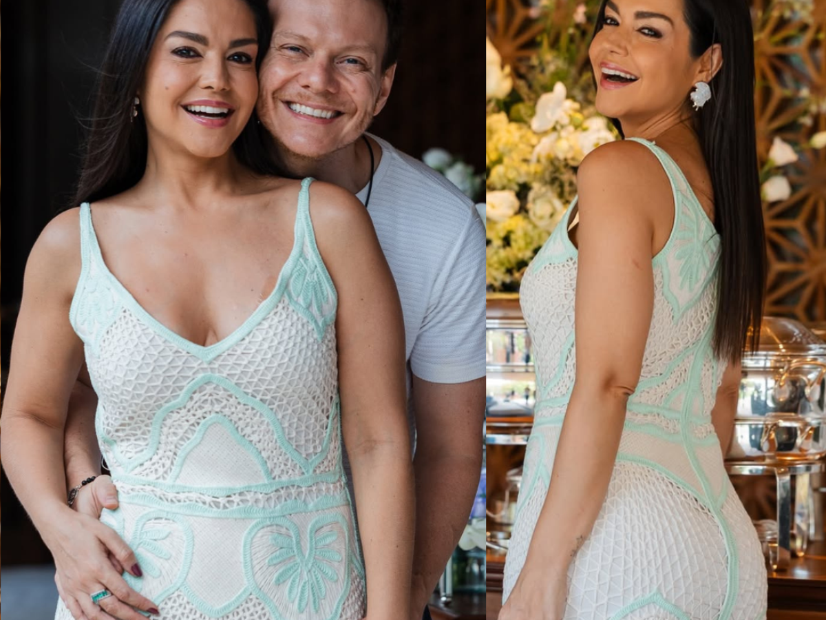 Thaís Fersoza escolheu um look à altura da ocasião para celebrar a chegada dos 42 anos em uma comemoração intimista, realizada no domingo (12), um dia antes da data oficial. A apresentadora apostou no vestido "Mônica", da coleção verão 2025/2026 da marca Tasciana Flores, conhecida por suas criações artesanais sofisticadas e bordados minuciosos.
