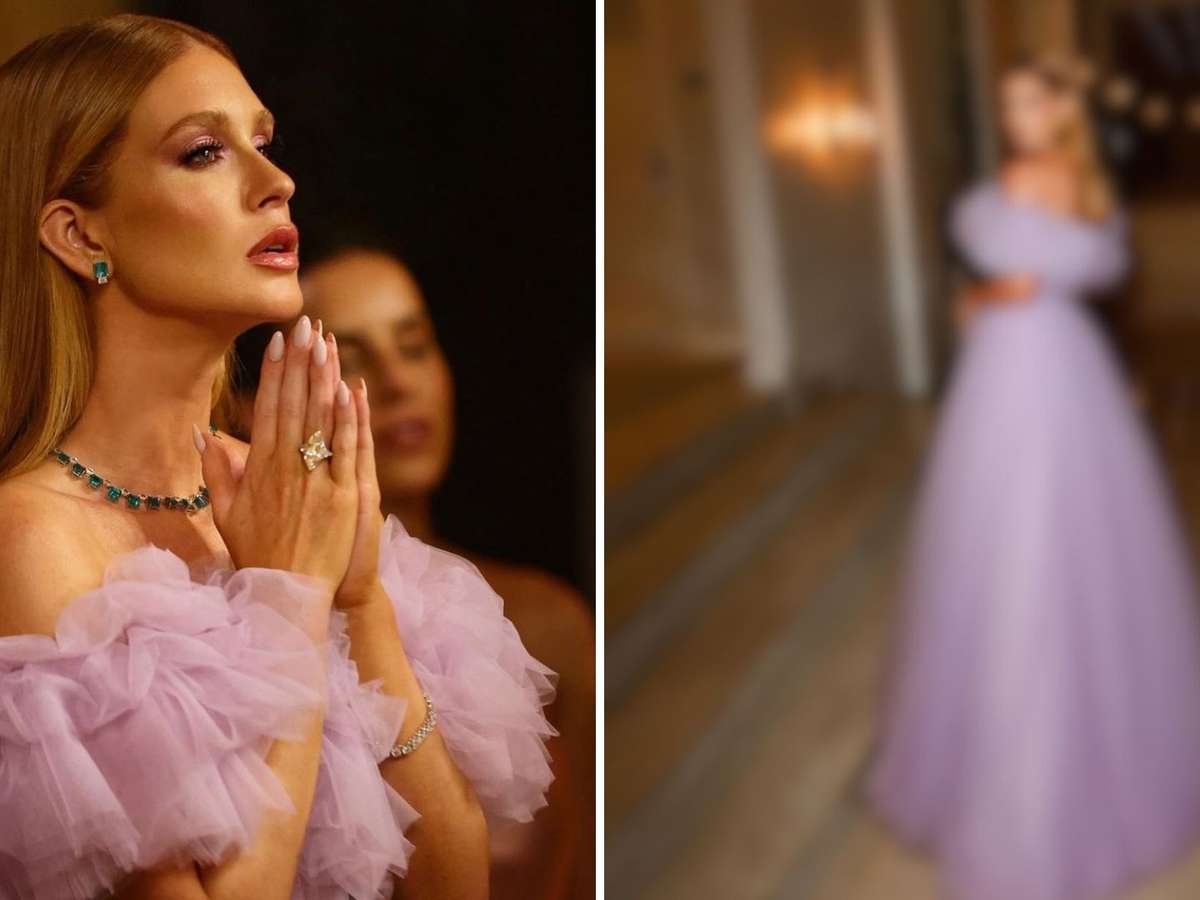 Servindo como uma inspiração mais do que perfeita para futuras madrinhas que queiram se jogar na tonalidade ou até mesmo em um vestido mais romântico, a atriz surgiu com um longo de saia ampla, decote ombro a ombro, inteiramente confeccionado em tecido de tule em camadas, além de babados na região do busto, trazendo uma dramaticidade a mais ao look.