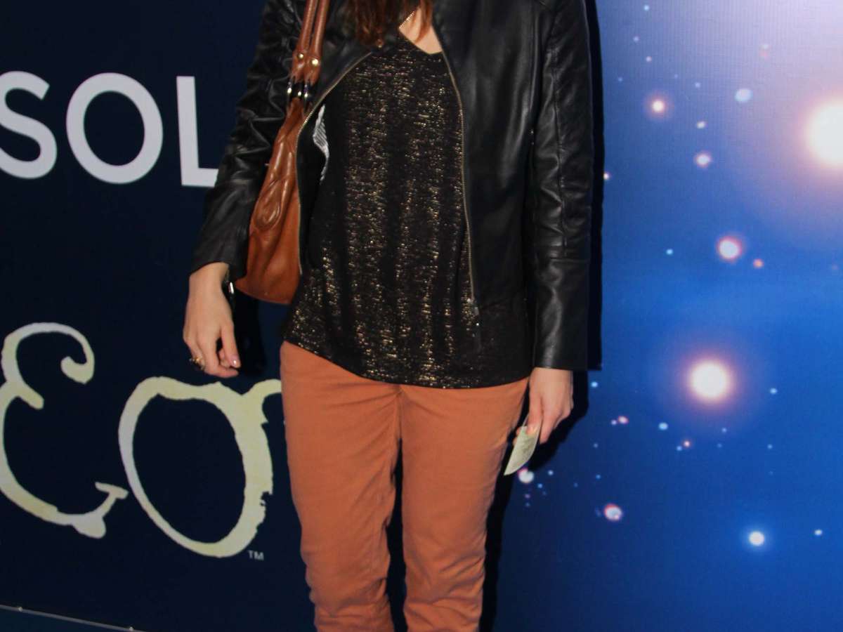 Mel Lisboa apostou na tradicional jaqueta de couro e escolheu calça colorida, em tom parecido com o da bolsa. A blusa com detalhes metalizados sofisticaram o visual, mas está muito larga na atriz, que tem silhueta miúda. Um modelo mais ajustado e acinturado teria ficado melhor