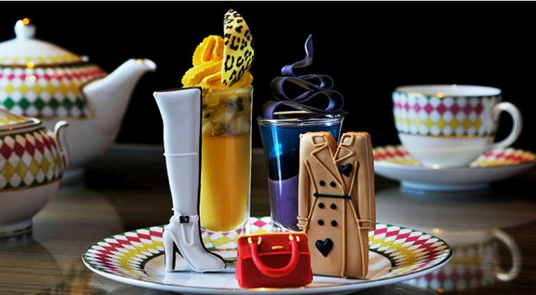 Neste momento, as tendências de outono-inverno 2013 recheiam o cardápio do chá da tarde. Entre os itens, destaque para um trench coat da Burberry que foi transformado em biscoito de gengibre e caramelo. Um biscoito de chocolate tem também o formato de uma bota da grife Gianvito Rossi