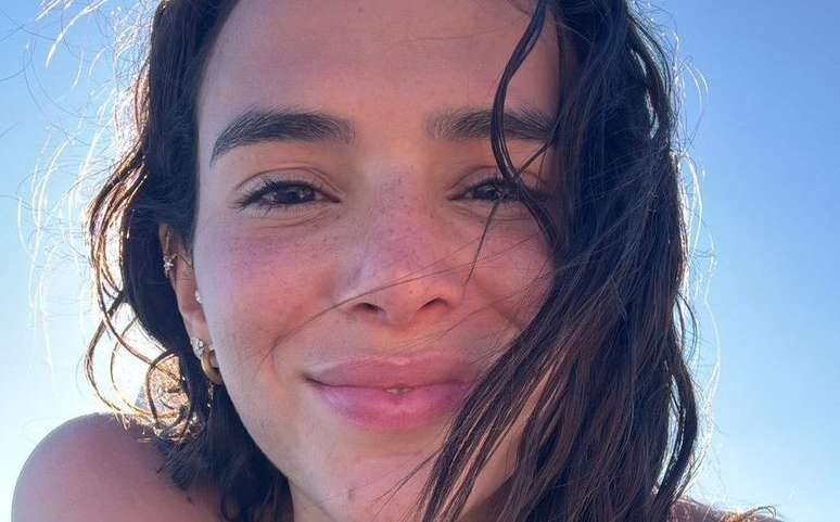 Bruna Marquezine curte mar e piscina com joia de R$ 69 mil