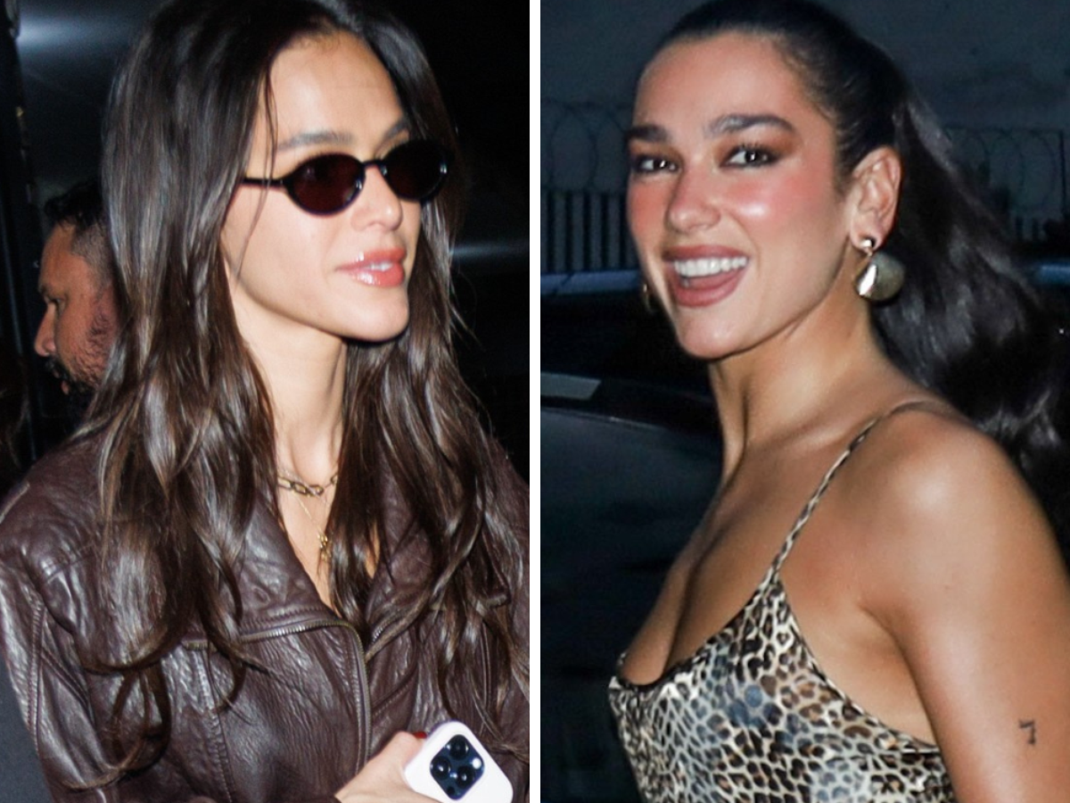 Bruna Marquezine, de couro, curte samba com Dua Lipa, de oncinha
