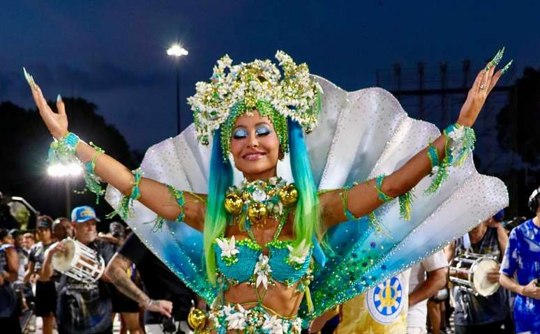 O look foi feito por Victor Hugo Mattos, que escreveu nos comentários da publicação: "A sereia mais linda que esse carnaval já viu!!!". O look todo em verde e azul, incluindo a sandália gladiadora, teve como destaque a cabeça poderosa e o costeiro em forma de concha, que ela não usou o tempo todo.