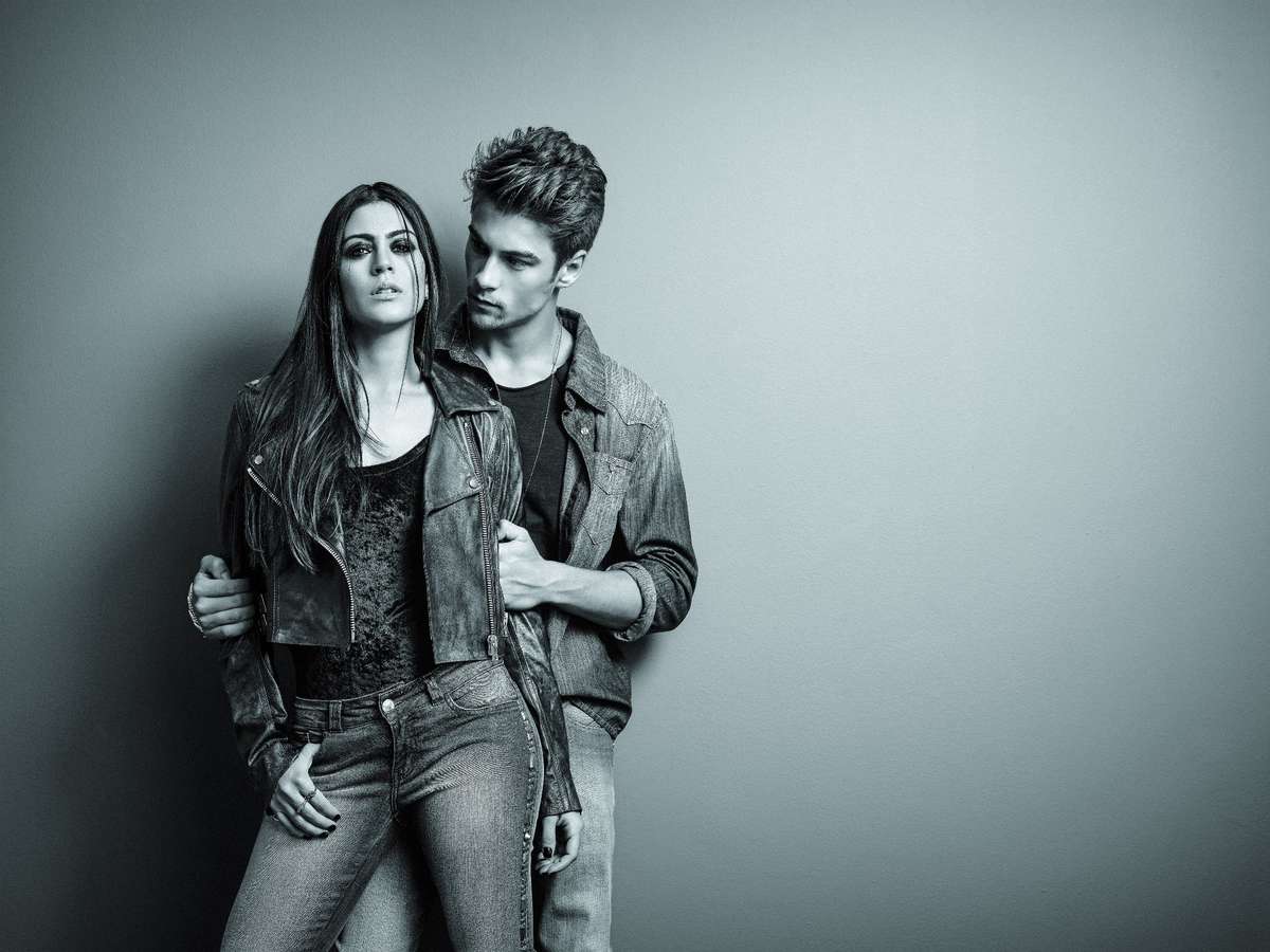 Carol Castro posou com o noivo Raphael Sander para campanha da Eventual, marca especializada em jeans. Os dois já estrelaram outros ensaios lado a lado. A coleção foi inspirada na moda dark e traz tachar, metais, spikes e couro. “Adorei o resultado”, disse ela sobre fotografar com Raphael.